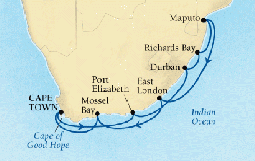 ケープタウン / ウォルビスベイ / シャーロットアマリー/セントトーマス島 / アビジャン / ダカール / ラスパルマス / サンタ・クルス・デ・テネリフェ / フンシャル(マディラ島) / ビーゴ / サウサンプトン