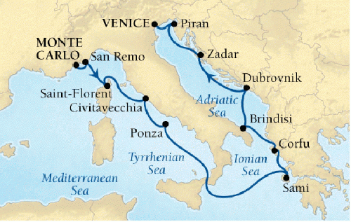 シーボーンオデッセイ号で航く 地中海アドリア海クルーズ 12泊13日 -モンテカルロ発ベニス着-