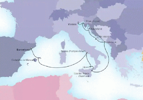 バルセロナ / マルセイユ / ジェノバ / チビタベッキア/ローマ / メッシーナ(シチリア島) / バレッタ