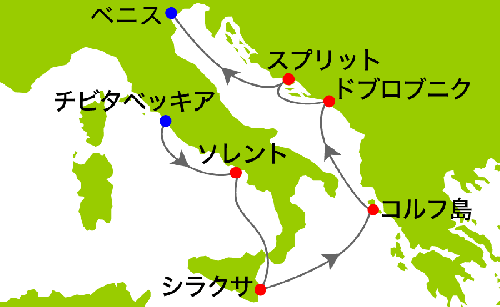 17:00 シラクサ(シチリア島/イタリア)出港 |