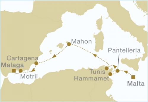 | 航路 | 東地中海 チュニジア、バリアレック諸島&スペイン マルタ/マラガ 9泊10日 |