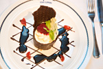 ディナーはメインダイニングでのフルコース、日替わりメニューの中からお好きな前菜、スープ・サラダ、メイン、デザートを選んで頂く方式です。