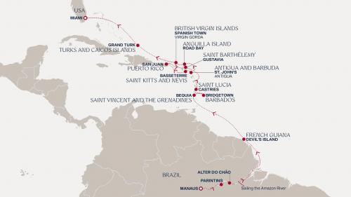 〈主要な寄港地〉 マナウス / パリンティンス / マカパ / デビルズ島 / ブリッジタウン / カサブランカ / バセテール / サンファン / プンタレナス / ヴァージン・ゴルダ島 / グランドターク / マイアミ