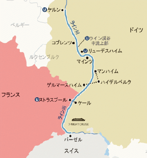 バーゼル / ブライザッハ / ストラスブール / マンハイム / リューデスハイム / コブレンツ / ケルン / アムステルダム