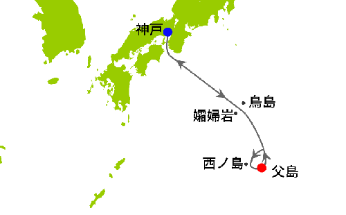 西ノ島沖通過 14:00 小笠原(父島)入港 |