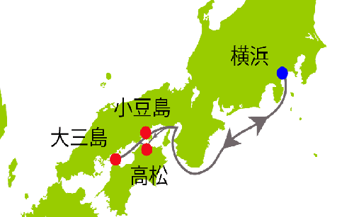 横浜 / 名古屋(愛知) / 瀬戸内海 / 釜山 / 八代 / 油津(宮崎) / 高知 / 神戸