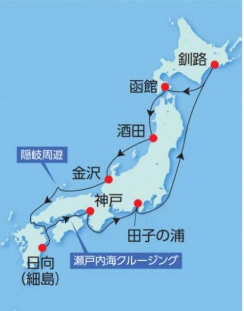 パンフレットで日程と寄港地を見る ➤![]() | 日程![]() | 寄港地![]() | 出発時間![]() | 到着時間![]() |