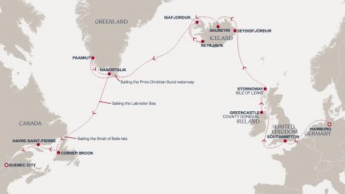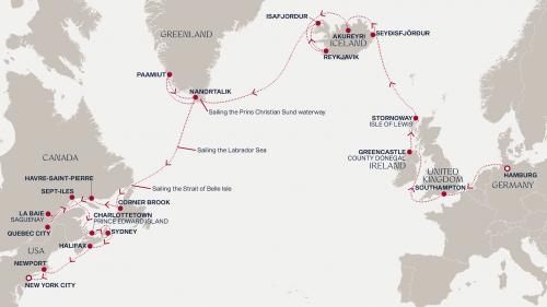 〈主要な寄港地〉 ハンブルグ / サウサンプトン / グレナダ / ストックホルム / Seyoisfjorour / アークレイリ / レイキャビク / イーサフィヨルズゥル / ケベックシティ