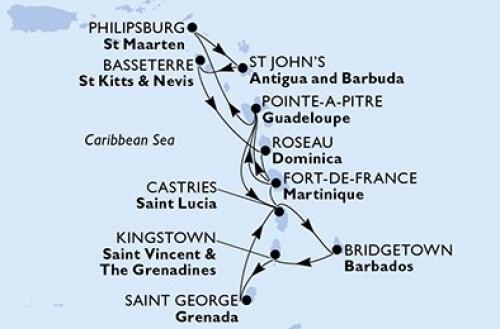 〈主要な寄港地〉 フォール=ド=フランス / セントジョンズ / ロードタウン / ラ・ロマーナ / サマナ / ヴァージン・ゴルダ島 / バセテール / フィリップスバーグ / カタリナ島 / ブリッジタウン