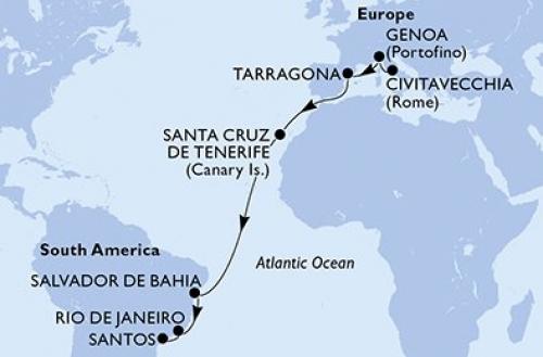 〈主要な寄港地〉 ナポリ / チビタベッキア/ローマ / ジェノバ / タラゴナ / サンタ・クルス・デ・テネリフェ / サルバドール / リオデジャネイロ / サントス(サンパウロ)