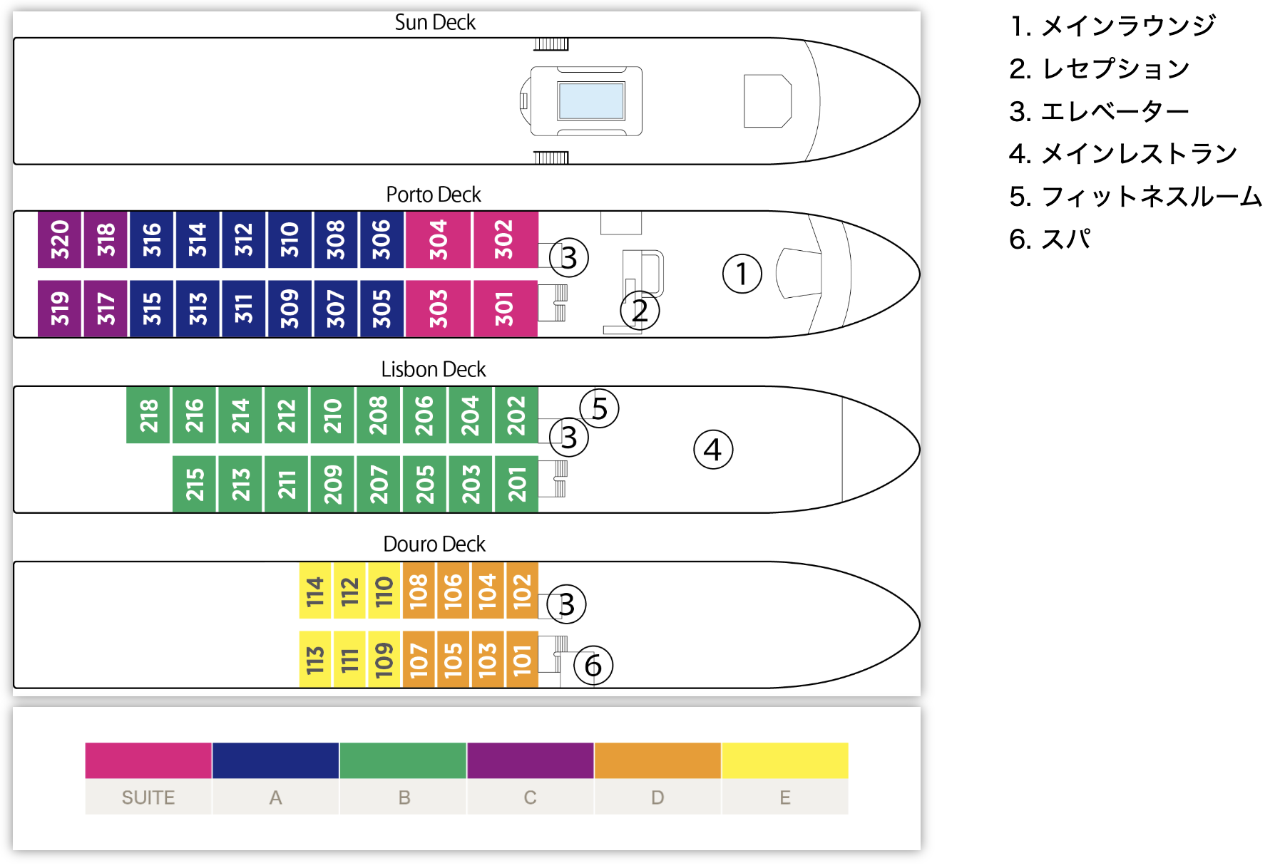 - 6室/全室外向き/シャワー(マルチジェットノズル)/トイレ/エアコン(温度調節付き)/バスローブ/スリッパ/ドライヤー/カード型キー/金庫/国際直通電話/姿見/バスルームのお化粧用拡大鏡/スパクオリティ・バスアメニティ(石鹸、ボディウォッシュ、シャンプー、コンディショナー、ボディローション)/ボトルウォーター/ライティングデスク&チェア/電圧220V(ヨーロッパC型丸ピン2本タイプ)/アマオリジナル エンターテイメント・オン・デマンドシステム(地上/衛星TV+最新ハリウッド映画+音楽+インターネットモニターはTVと兼用、キーボード付)