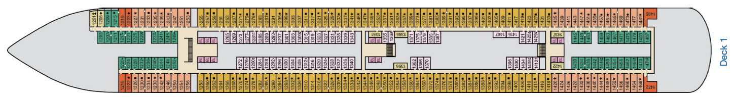 舷窓付きインテリアアッパー/ロア   - これらのステートルームは、予算内でクルーザーのペアに最適で、ツインベッド1台、プルマンベッドまたはソファベッド1台など、異なるレイアウトでスペースを創造的に最大化し、さらに丸い窓から海の景色を眺めることができます。