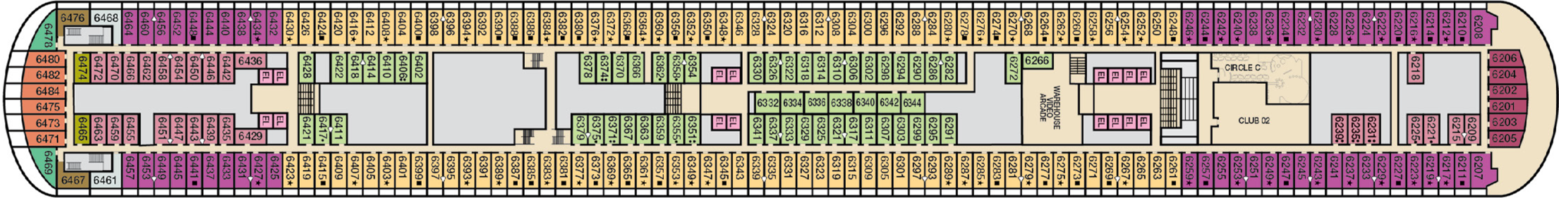 カーニバルクルーズでは、キャビンがあなたの拠点です。どの種類の部屋を選んでも(シンプルなインテリアやオーシャンビューを考えているのか、バルコニーやスイートを見ながらゆったりとお過ごしになっているのか)存分に楽しんだ一日を締めくくるのにぴったりと感じるでしょう。また、昼でも夜でもすべての部屋には管理人とルームサービスを依頼できるアテンダント、そして部屋の中でのサービスがあります。