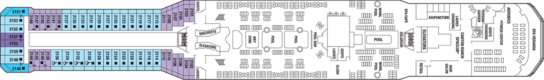 本格的なショーやカジノ、複数のバーラウンジ、図書館など設備も充実。上質のサービスを目指し造られたこのシリーズは、船内にフラワーショップがあることや清潔で明るい全天候型プールなどが人気です。