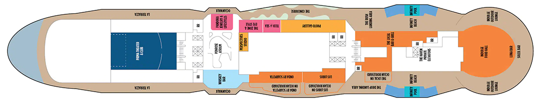 - 外の空気を感じながらカクテルを片手にリフレッシュしませんか? 外の空気を感じながらドリンクを楽しむなら、ソレイユバーがおすすめです。広々としたオーシャンフロントプロムナード、オーシャンブルバードのインダルジ アウトドアラウンジ内、船尾後方にあるこのバーは、素晴らしいカクテルとドラフトビールのセレクション、そして心安らぐ海の眺めが自慢です。