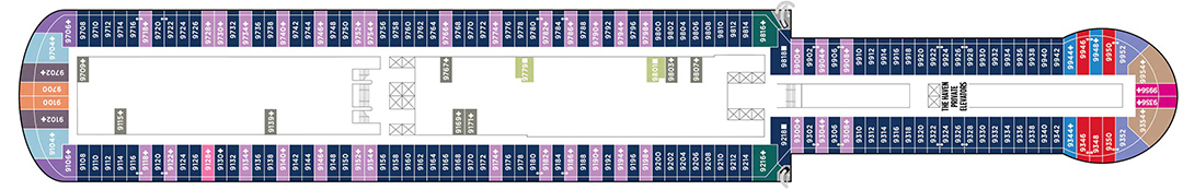 - ノルウェージャン初となる3階建てのガラス張りのアトリウム。レストランやラウンジが立ち並び、水平線が一望できる素晴らしいスペースです。
