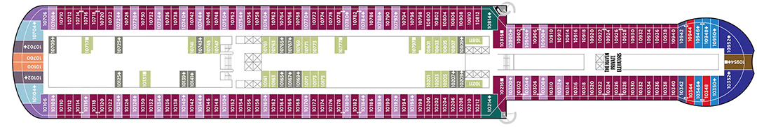 - フロア面積: 90-92 m2/バルコニーの広さ: 48-49 m2/ザ・ヘブンの専用エリアにある贅沢なオーナーズスイートは、キングサイズベッドのあるスタイリッシュなマスターベッドルーム、追加で2名様がお休みになれるダブルソファベッド、ジェットシャワー付きの豪華なバスルームを備え、船尾側の大きなバルコニー、屋外ジャグジー(一部スイートのみ)からは素晴らしい眺めをお楽しみいただけます。 さらに、コンシェルジュと24時間対応のバトラーがあらゆるご要望にお応えします。*デッキ10(10352と10952)のスイートには屋外ジャグジーはありません。