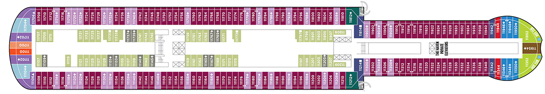 - フロア面積: 46-55 m2/バルコニーの広さ: 11-20 m2/ザ・ヘブン専用のエリアに位置する豪華なペントハウスには、キングサイズベッドを配したマスターベッドルーム、2名様でご利用可能なダブルソファベッド、素晴らしい眺めを楽しめる船尾側のバルコニーがあります。 また、バトラーとコンシェルジュサービスもご利用いただけます (ADAステートルームには独立したベッドルームはありません)。