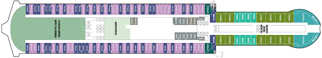 - フロア面積: 56-61 m2/バルコニーの広さ: 12-17 m2/ザ・ヘブンにあるこちらのヴィラは、ご家族での宿泊にぴったりです。 1室はキングサイズベッド、もう1室はクイーンサイズベッドを備えたベッドルーム2室、ダブルソファベッド、ジェット付きシャワーのある2つのバスルーム、大きなバルコニーを完備。全員で美しい景色や星空を楽しみつつ、快適にお過ごしいただけます。 さらに、ザ・ヘブンのアメニティやバトラー、コンシェルジュサービスが利用でき、バケーションがさらに完璧なものになります。【ご注意】ステートルーム15300、13900、および14900は眺望内にスライドがあり、視界が一部さえぎられています。