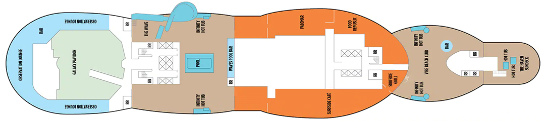 - 18歳以上の方限定のバイブビーチクラブに誰よりも早く足を踏み入れ、落ち着いた雰囲気を満喫しましょう。 フルサービスのバーで、シャンパングラスを片手にくつろぎながら素晴らしい眺めに乾杯! そして、ノルウェージャン クルーズライン初のインフィニティ ジャグジーに身をゆだねて、移りゆく絶景をお楽しみください。 この豪華なプライベートリトリートのご利用に必要なパスは、数に限りがあります。 パスは事前に、または船内のゲストサービスデスクでも購入できます。