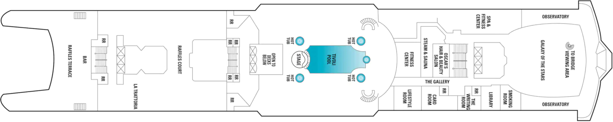 - 夜になると音楽で満たされ、ステージがダンスフロアと化すスピンネーカーラウンジで楽しいひと時を。 パノラマビューのこのスペースは、パーティーやインフォーマルな集まりに最適です。