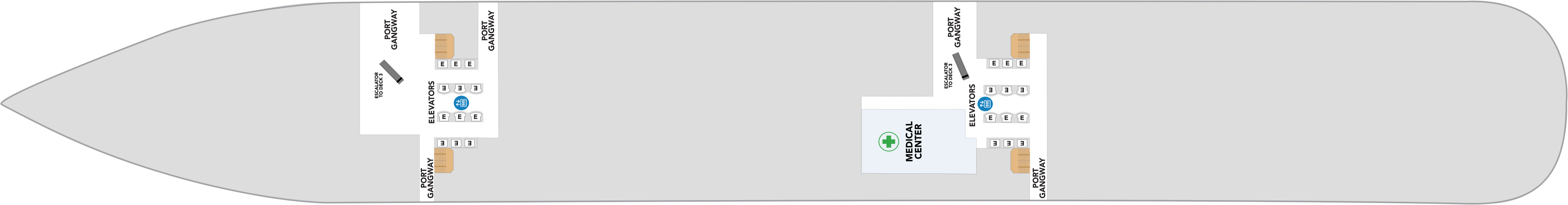 - 9デッキ分の高さからの空中を横切るスリル満点のアクティビティ。ボードウォーク上から船内の様子を眺めながら約25mを渡ります。