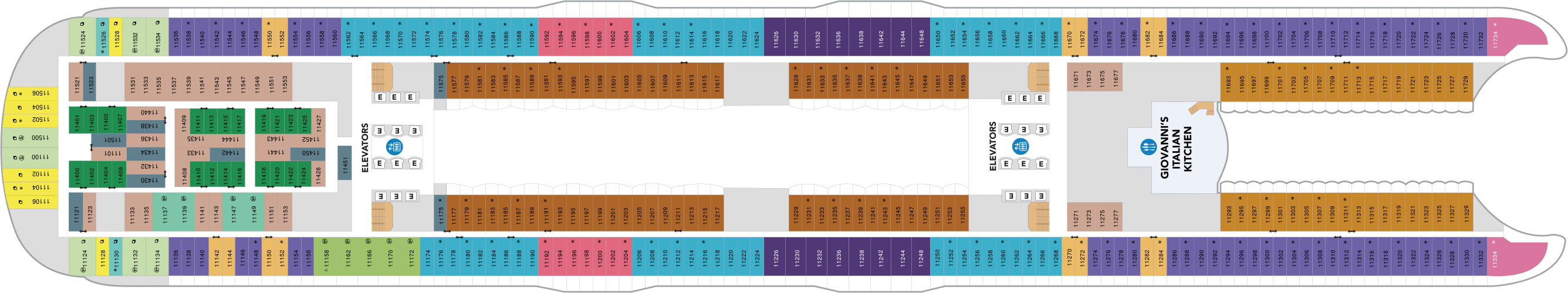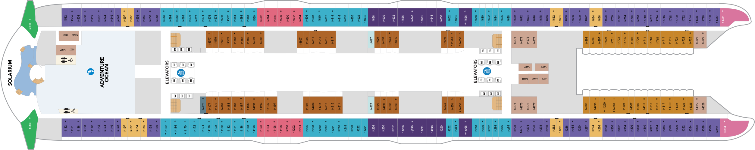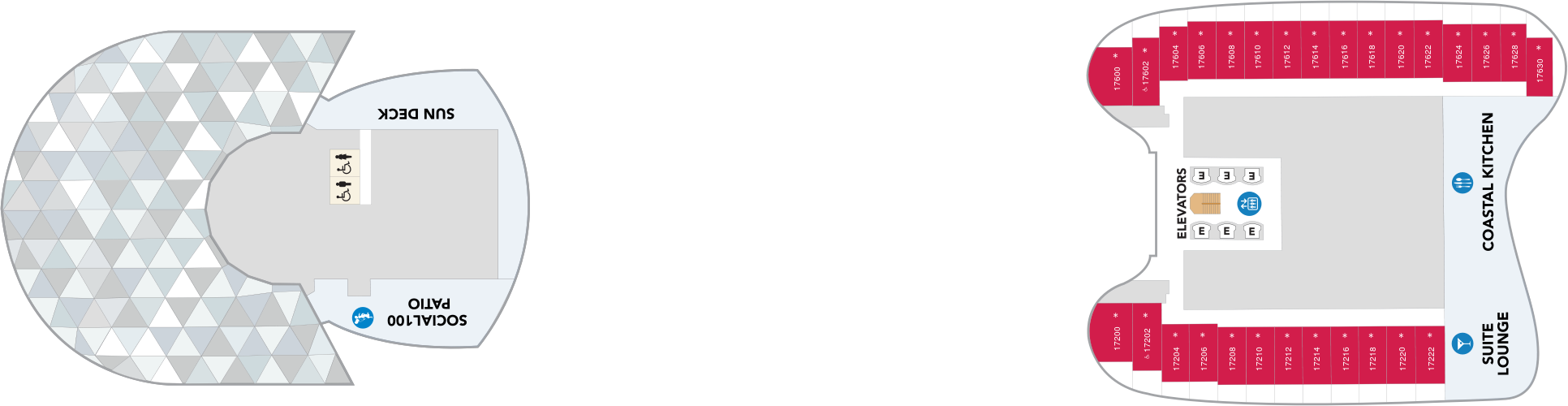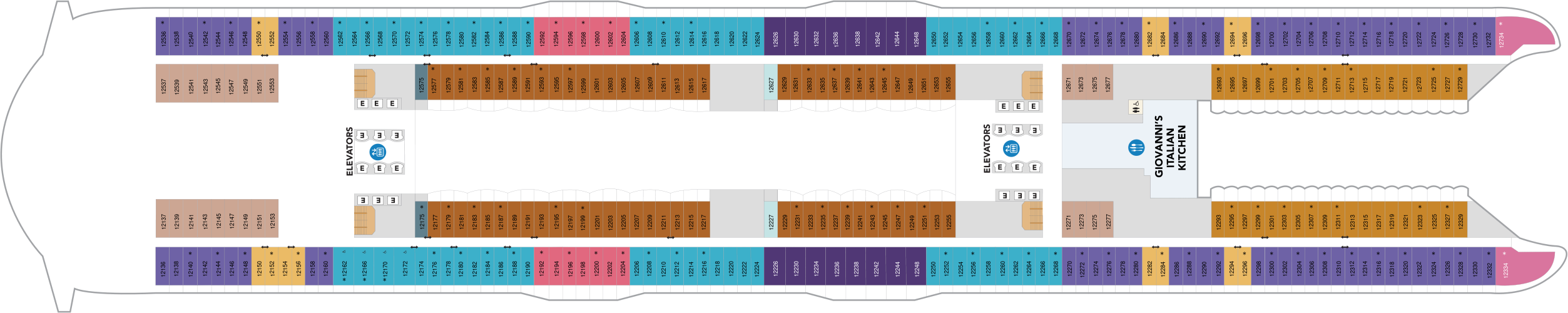 - ツインベッド、シッティングエリア、窓、バスタブ、フラットテレビ、電話、クローゼット、ドライヤー、タオル・バスタオル、シャンプー、110/220V共有電源、バスローブ、バルコニー、シャワー、化粧台、ミニバー、金庫、石鹸、室内温度調節、最大収容人数4名※スカイクラスのスイート特典がつきます。コンシェルジュサービス/インターネット無料/乗船日の水のサービス/スイート専用ラウンジ・エリア利用/スイート専用ダイニング利用可/優先乗船・下船/船内レストラン・イベント優先予約/ワンランク上の客室アメニティ/客室にコーヒーマシーン