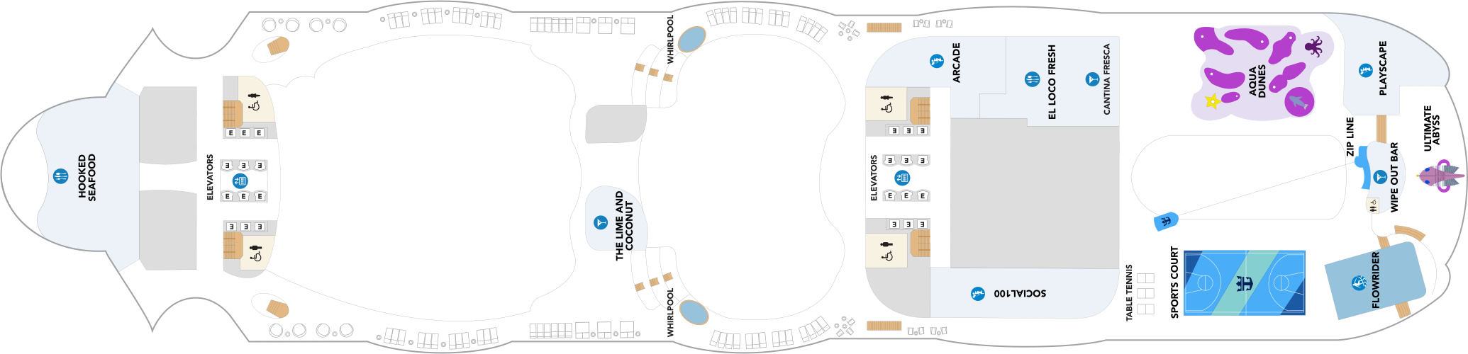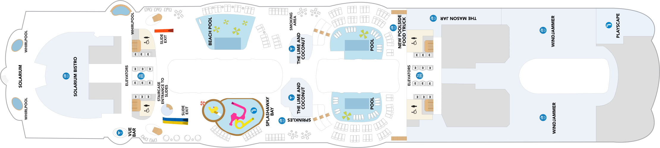 - トロピカルカクテルやプールサイドのフードトラックで軽食が楽しめるリゾートスタイルのプール、8つのジャグジー、3階建てのウォータースライダー「パーフェクトストーム」など、リラックス派もアクティブ派も楽しめる雰囲気の異なるプールを完備しています。