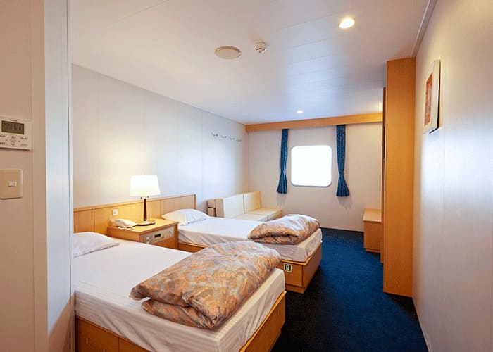 - フロア面積: バス・トイレ・テレビ/部屋タイプ:個室タイプ・ツインベッド2名+ソファベッド2名/定員:4名/ベッドサイズ/200cm×85cm 面積/17㎡