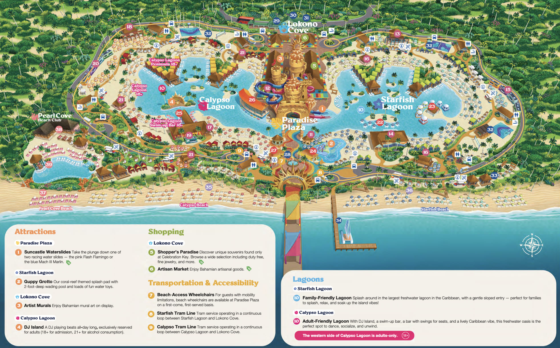 カリブ海最大の淡水ラグーンが中心にあり、ウォータースライドや小さな子供向けの水遊び場があります。